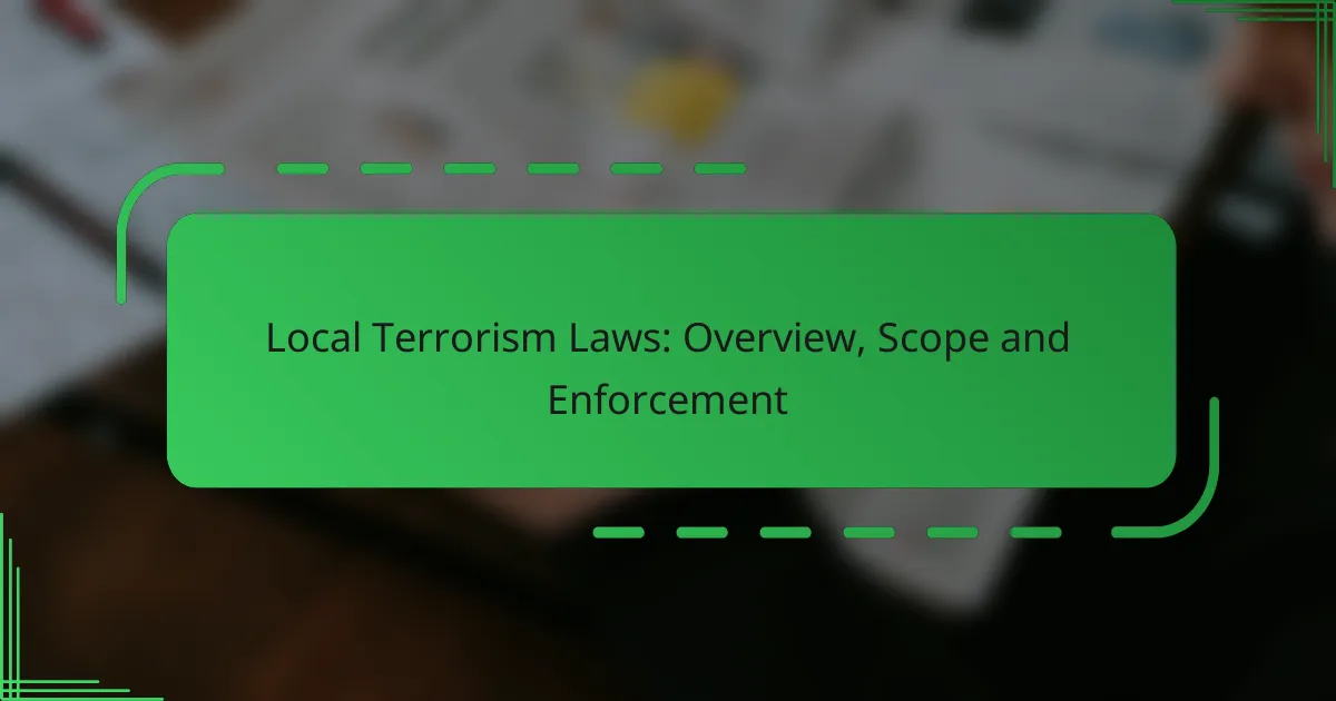 Local terrorism laws in the United States consist of various federal and state regulations designed to prevent and respond to terrorist activities. These laws not only define terrorism and outline penalties but also establish enforcement mechanisms to safeguard national security and public safety. Enforcement is carried out by local law enforcement agencies, often with federal support, to effectively address threats within communities.